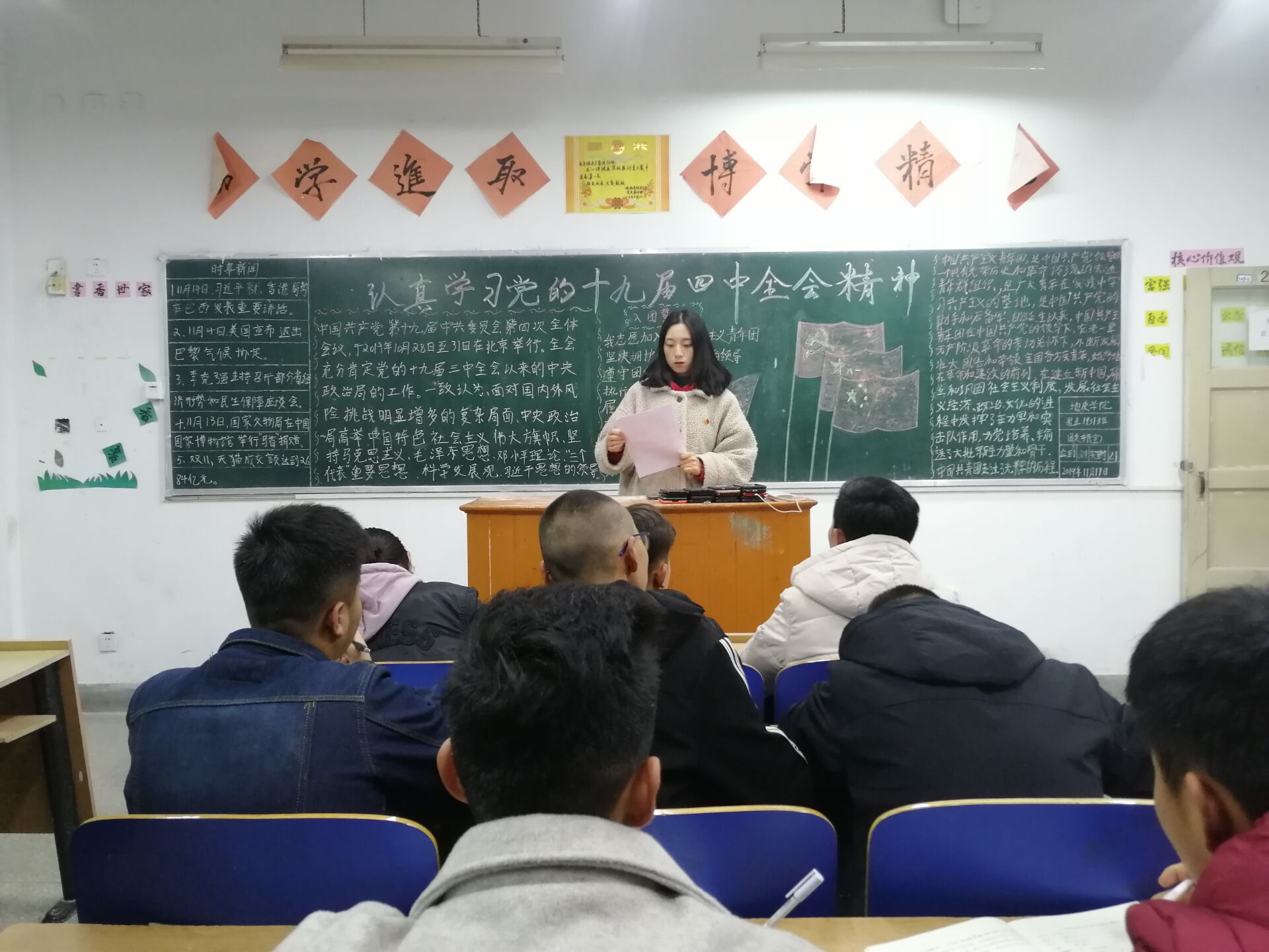 通过本次对“党的十九届四中全会精神”的学习,使同学们把思想和行动统一到党的十九大精神上来,把智慧和力量凝聚到落实十九大提出的各项任务上来,作为社会主义的建设者和接班人将来为祖国的发展和民族的复兴贡献一份力量。