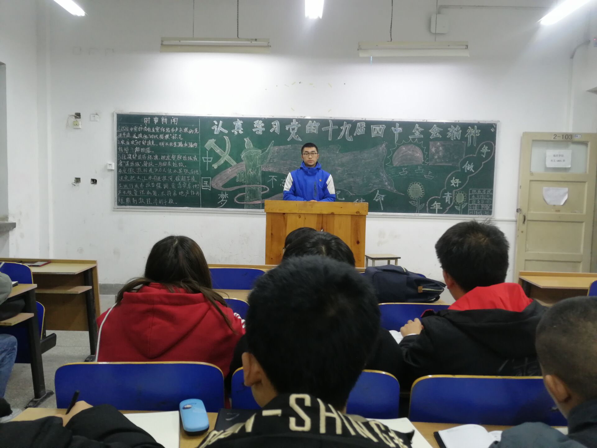 为了深入学习贯彻党的十九届四中全会精神,着力发挥监督保障执行和促进完善发展作用,w88优德官网团总支于11月17日晚开展了以“认真学习党的十九届四中全会精神”为主题的团课。2019级全体同学参加,会议由w88优德官网团总支负责人、辅导员范永强老师主持。